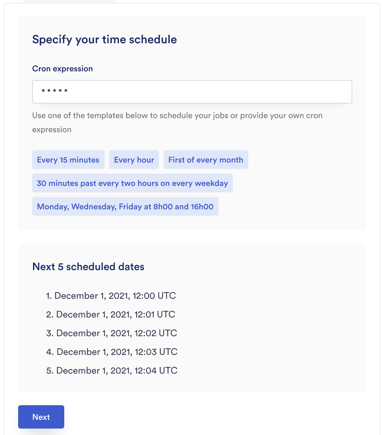 After entering your CRON expression, click Next.