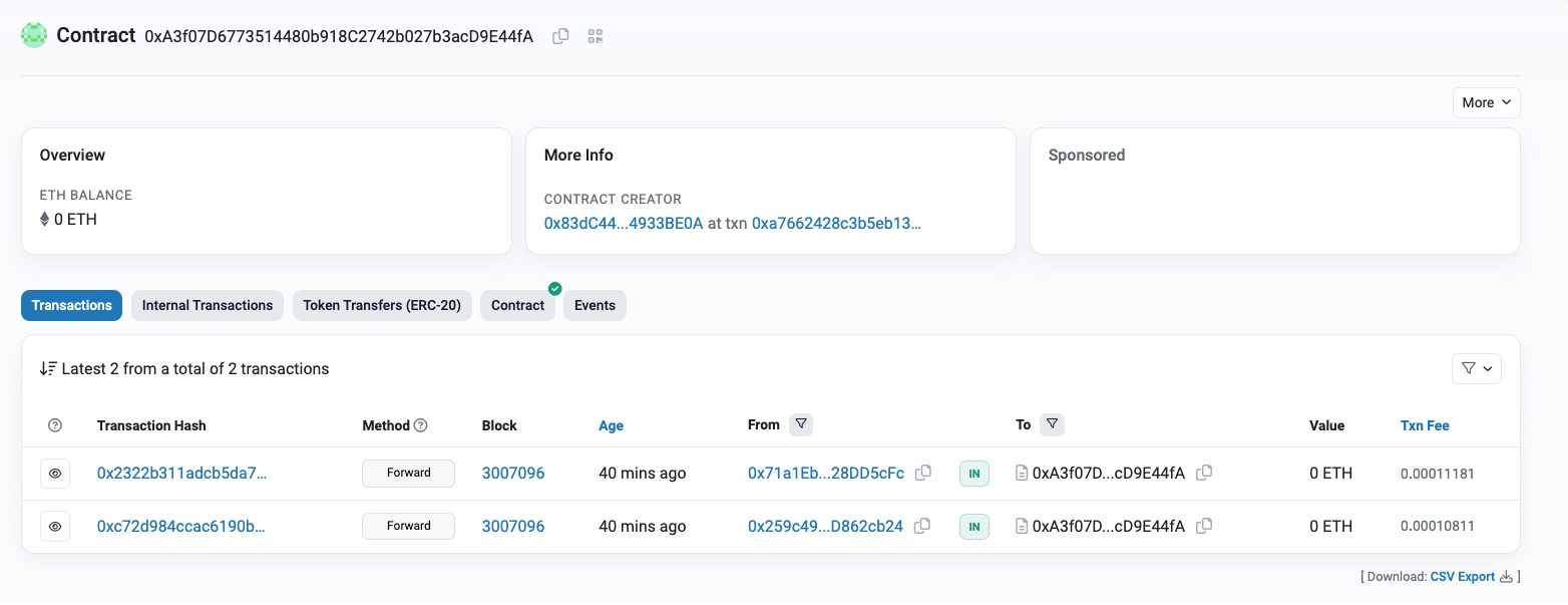 • The owner of a forwarder contract is an operator contract. The owner of the operator contract is a more secure address, such as a hardware wallet or a multisig wallet. Therefore, node operators can manage a set of forwarder contracts through an operator contract using a secure account such as hardware or a multisig wallet.