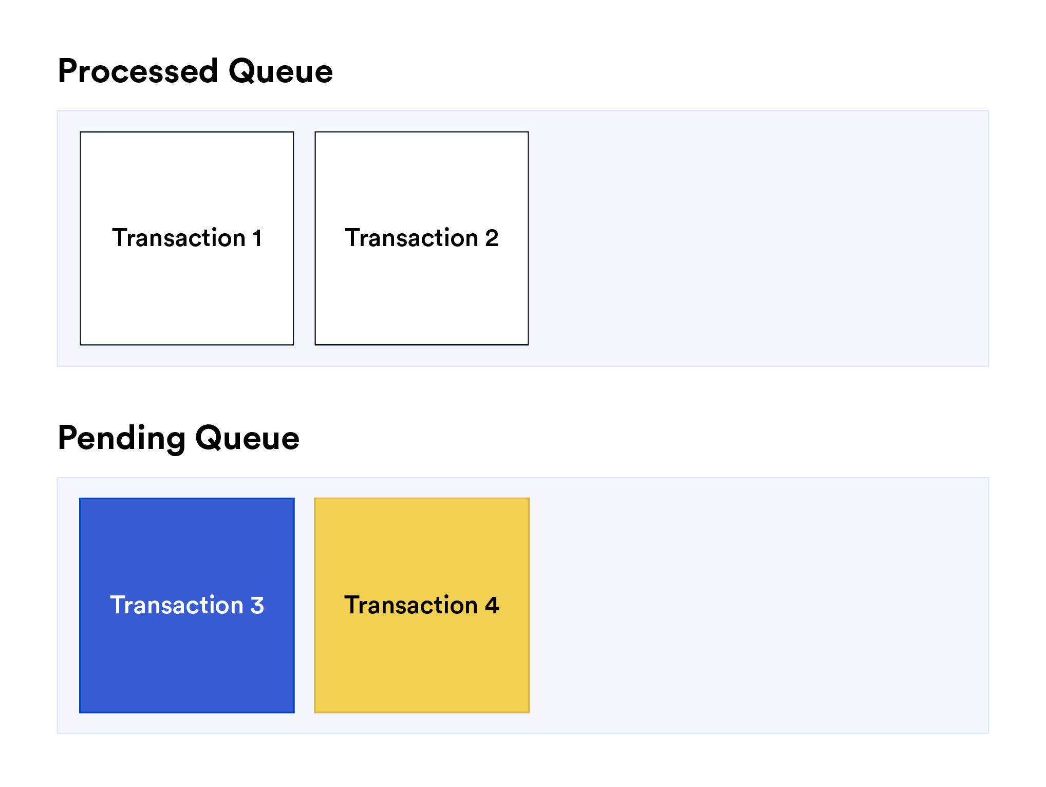 After the sequencer comes back up, it moves all transactions in the pending queue to the processed queue.